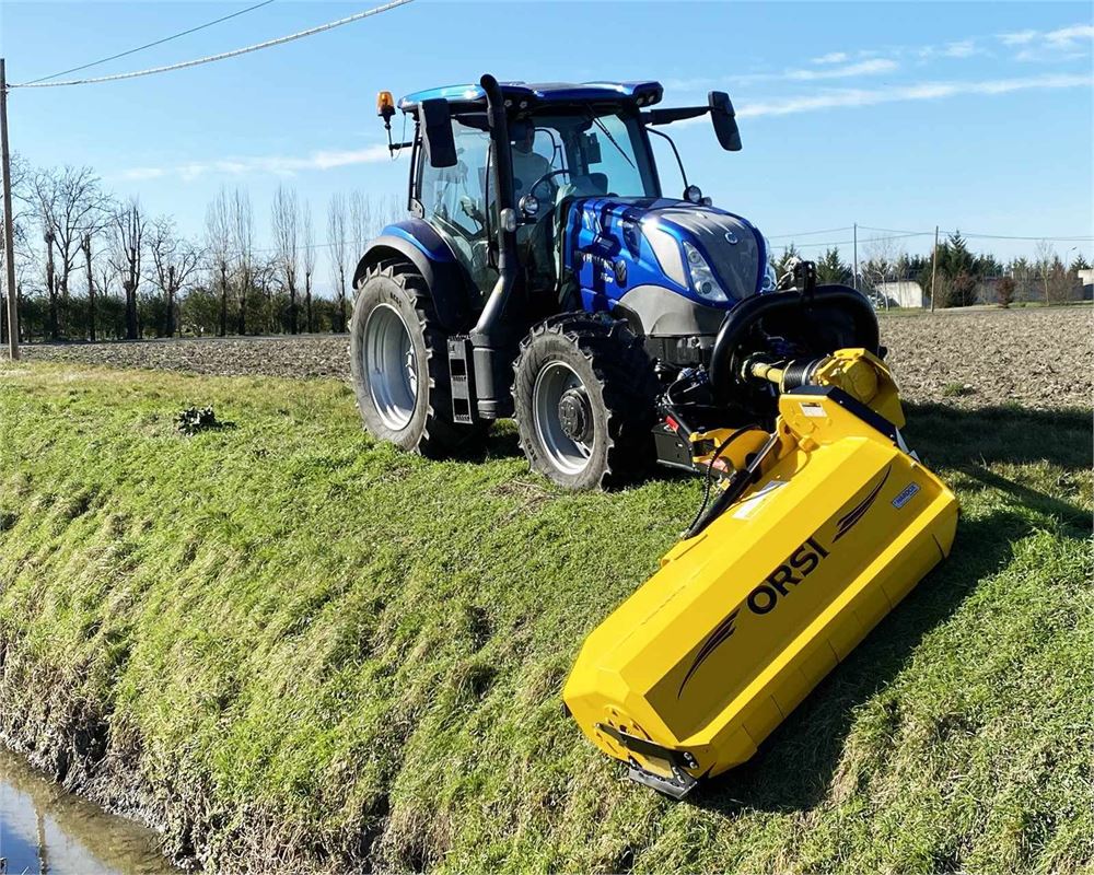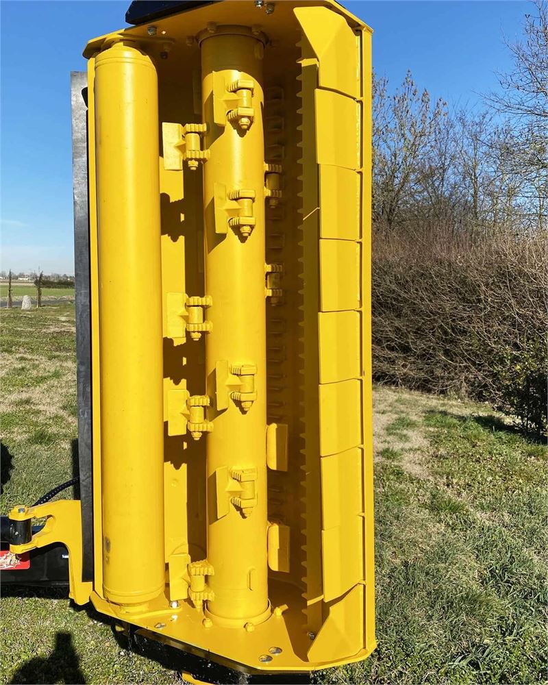 Trinciatrice frontale laterale con Grande Sbraccio idonea per la pulizia di banchine stradali, fossati, argini, giardini e aree verdi. Dotata di inclinazione idraulica con raggiungimento della posizione verticale fino a 90° per la potatura e trinciatura di siepi. Consigliata per lo sfalcio di erba, sarmenti e ramaglia fino a 9-10cm di diametro. Adatta a lavorare sia anteriormente che lateralmente al trattore. L’apparato trinciante è costituito da un doppio telaio interno costruito totalmente in HARDOX® (acciaio resistente all’usura e antiabrasivo). Doppia posizione del rullo posteriore di appoggio: 1) autopulente per consentire lo scarico del prodotto trinciato posteriormente al rullo; L’assorbimento di potenza del trattore viene così ridotto al minimo con conseguente riduzione dei consumi. 2) posteriore, per trattenere maggiormente il prodotto all’interno dell’apparato trinciante e quindi sminuzzarlo ulteriormente. Le 2 file di controcoltelli installate all’interno garantiscono in entrambe le 2 posizioni del rullo di appoggio un’ottima qualità di trinciatura.