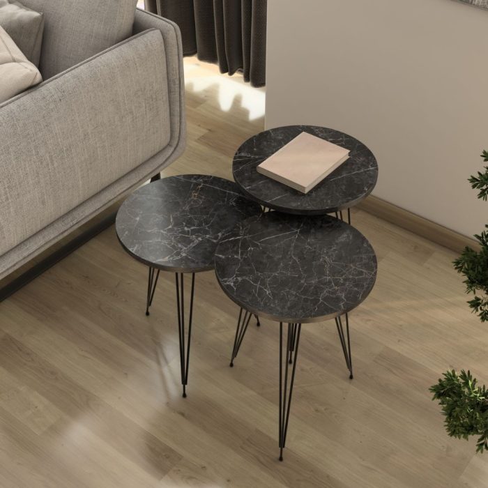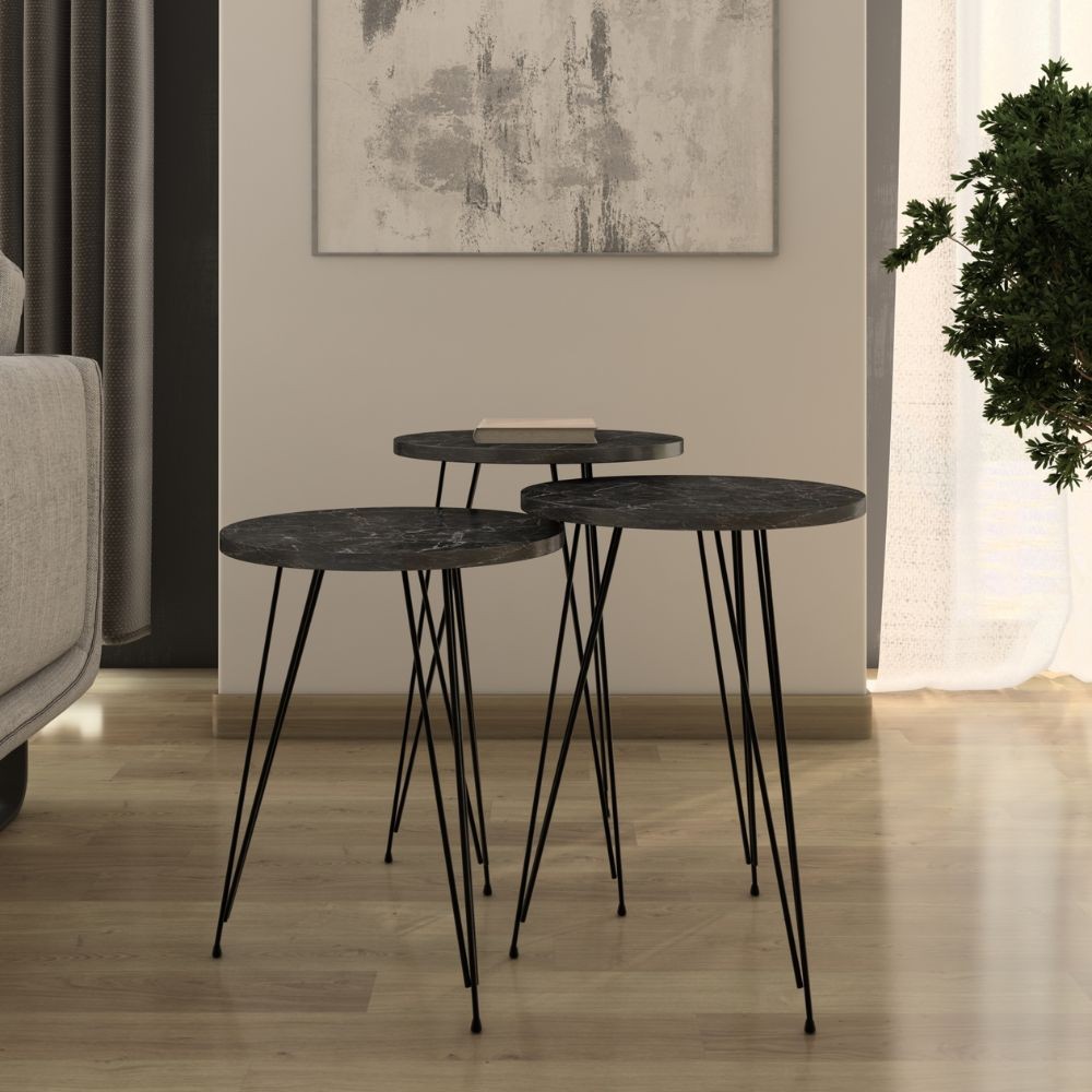 Tris tavolini Nisa 38 colore antracite con gambe metallo nero