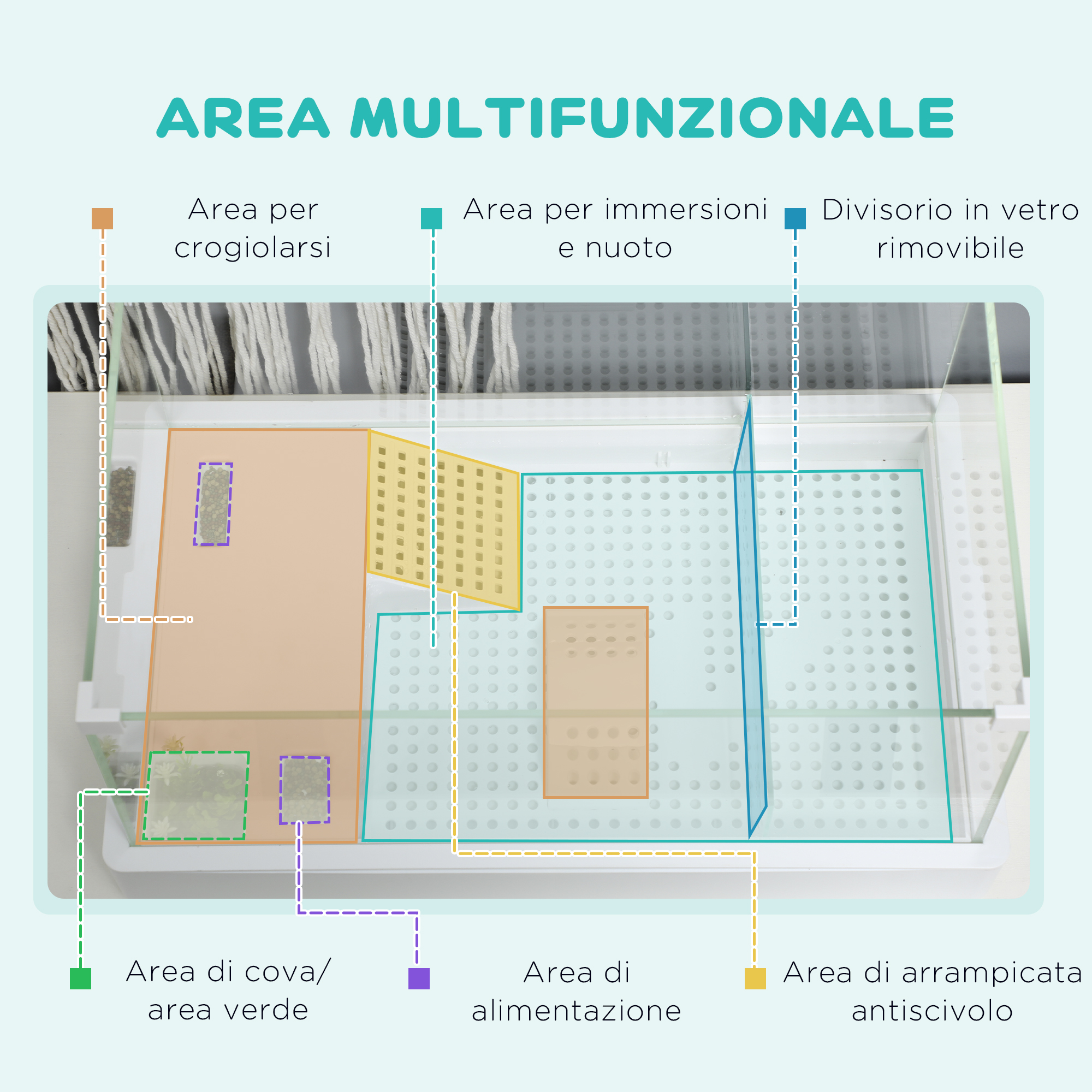 - • Paludario con pannelli in vetro da 5 mm facili da pulire che permettono di osservare facilmente il tuo animale domestico