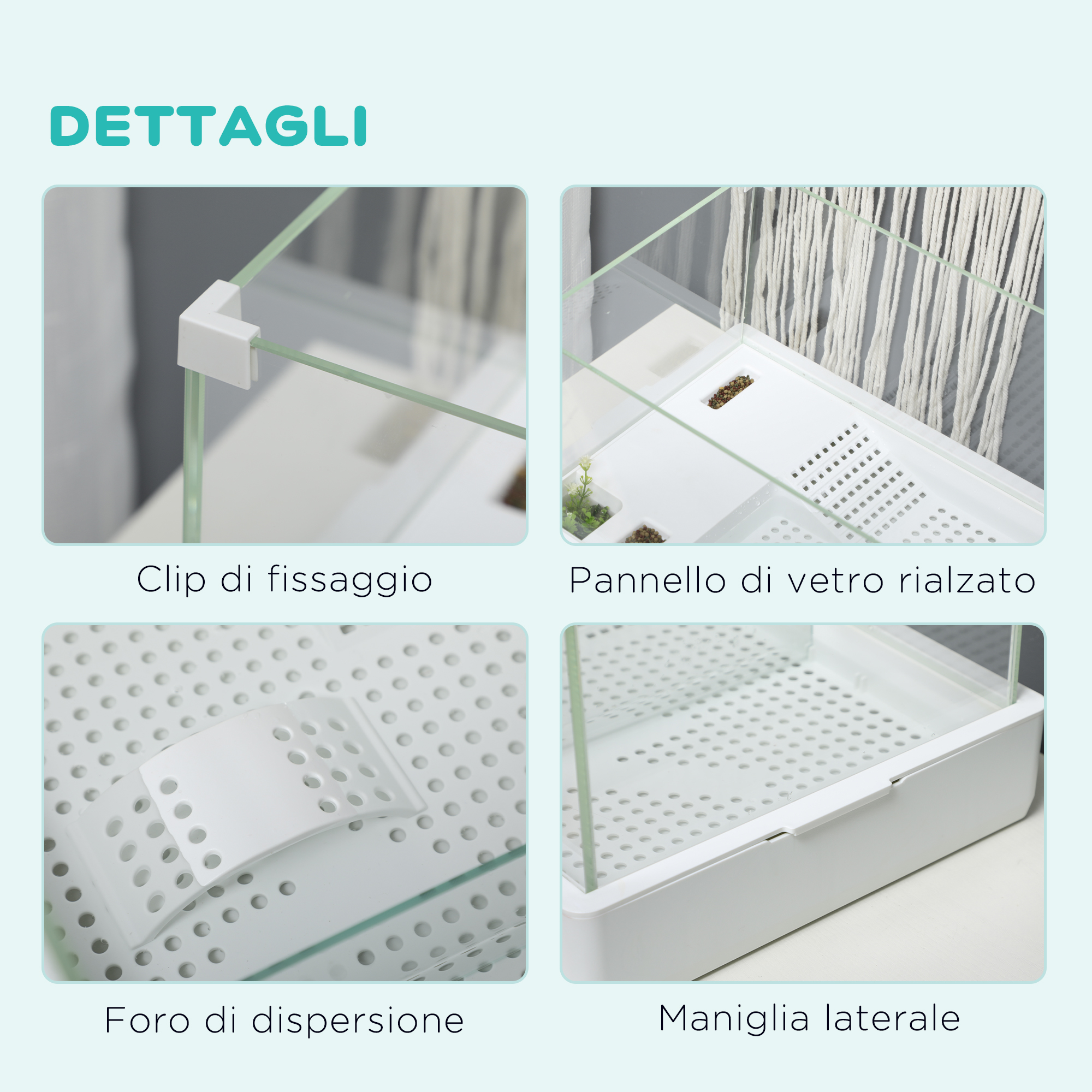 - • Il pannello laterale in vetro è alto 18 cm, garantendo che i tuoi animali non possano fuggire