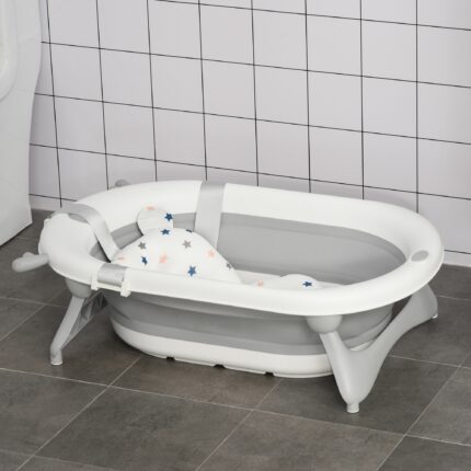 Vaschetta Bagnetto Pieghevole per Bambini 0-3 Anni con Cuscino Regolabile Azzurro e Piedini Antiscivolo, 80×53,9×20,8cm Verde