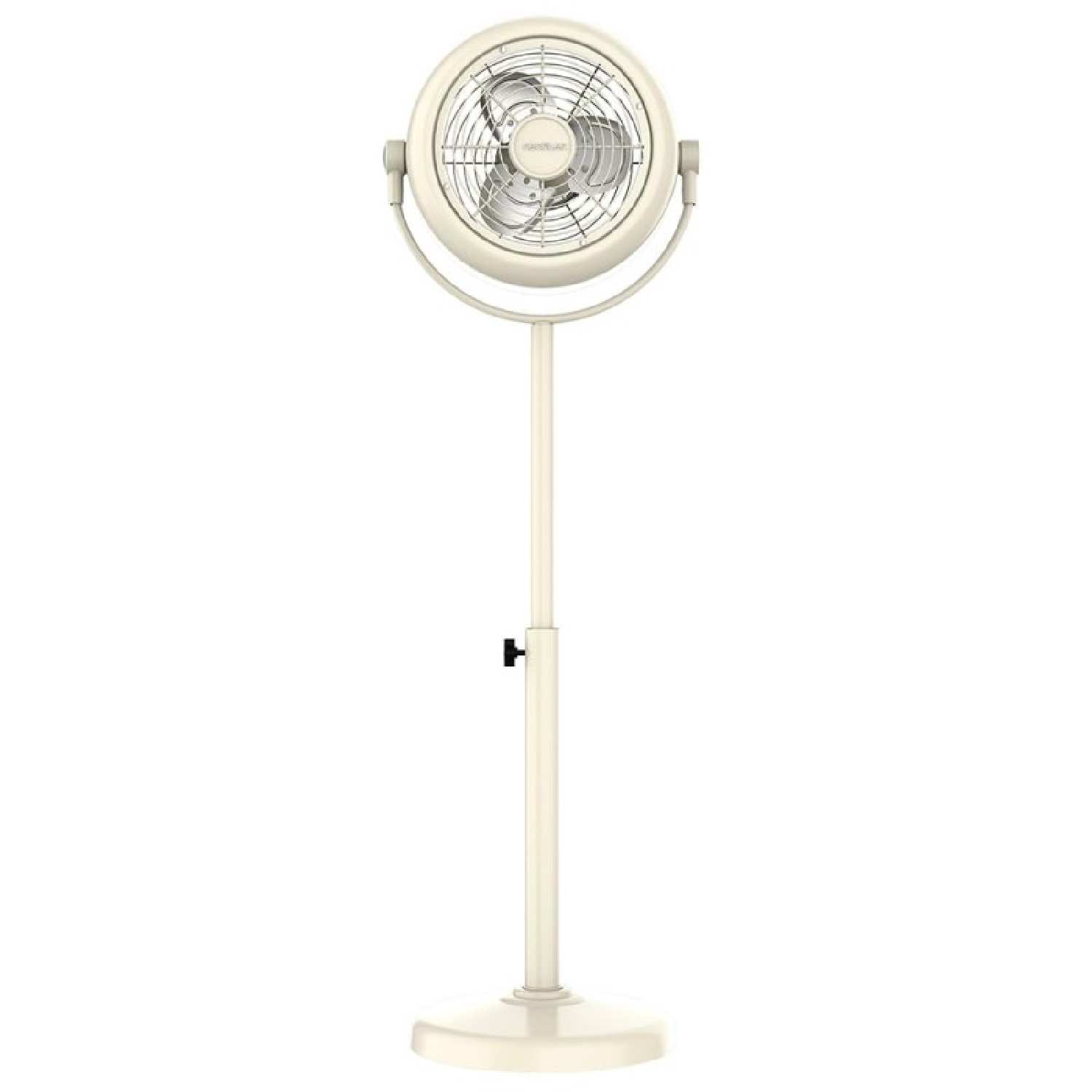 Ventilatore a piantana beige da 10″ in stile retrò con 25 W e inclinazione regolabile.