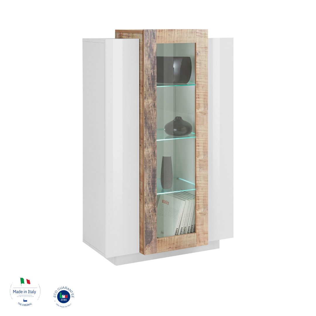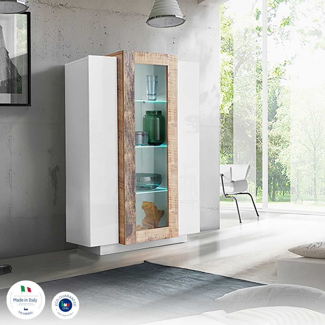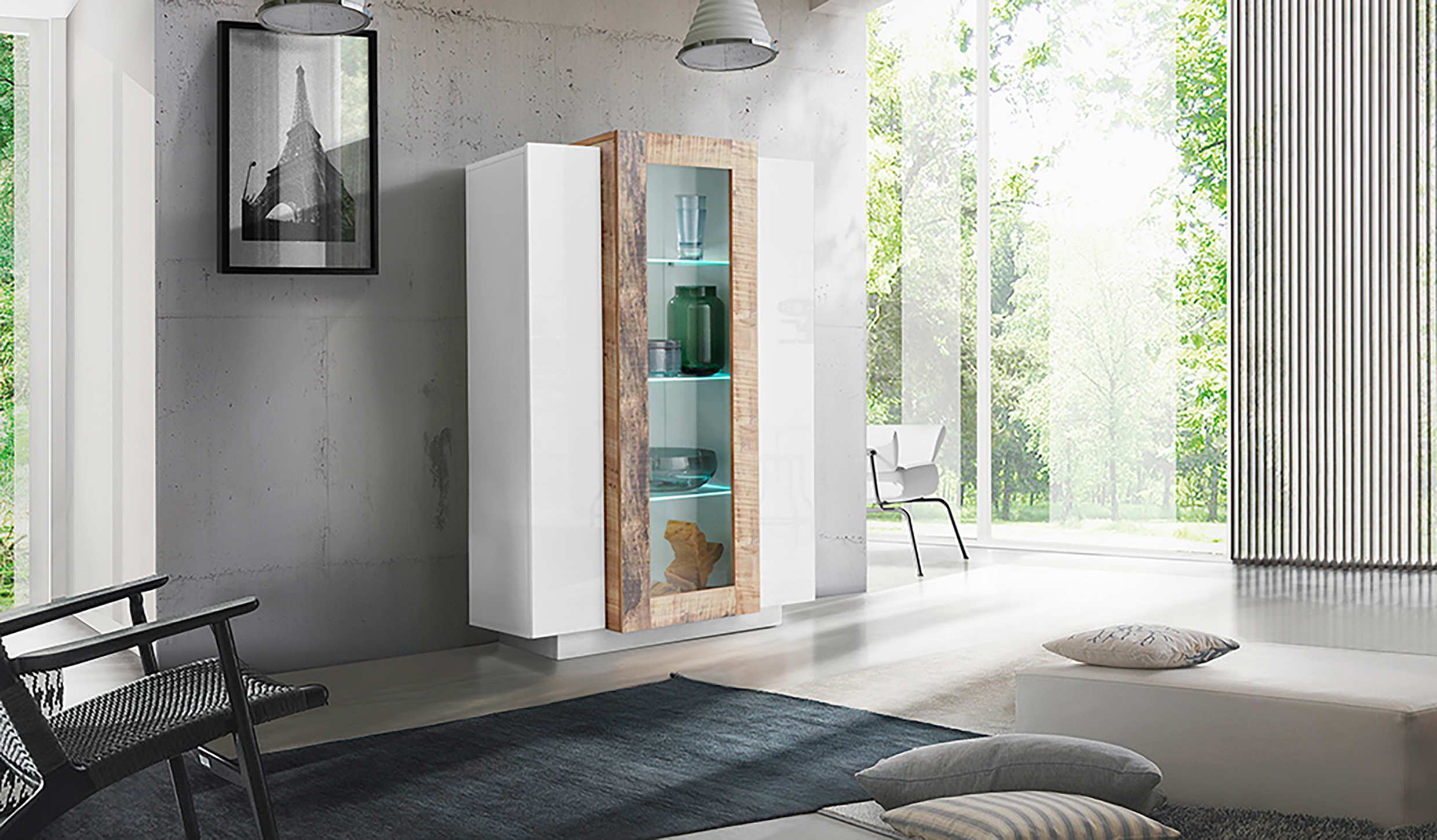 Vetrina CORO Bianco laccato lucido / Acero Pereira
