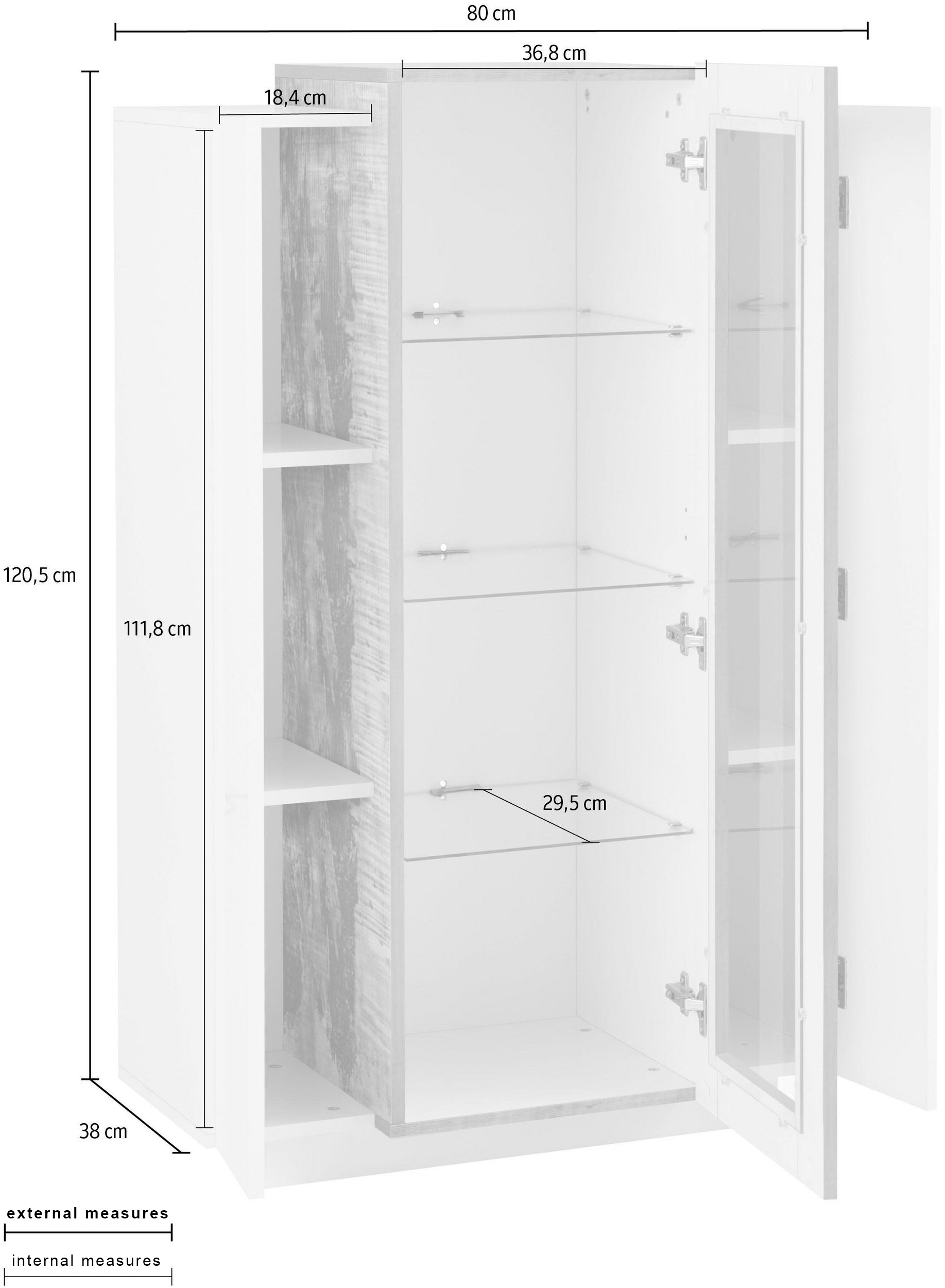 La vetrina CORO con 2 piccole ante laterali ed una grande anta a vetro risulta un mobile adatto ad un ambiente moderno, grazie al suo design lineare e pratico, può essere utilizzato sia singolarmente sia con altri componenti della collezione CORO.