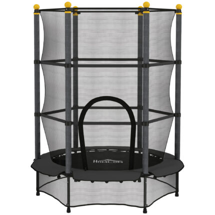 Tappeto Elastico per Bambini con Rete di Sicurezza e Pali Imbottiti Età 3-10 Anni, Ø140 x 190 cm, Nero