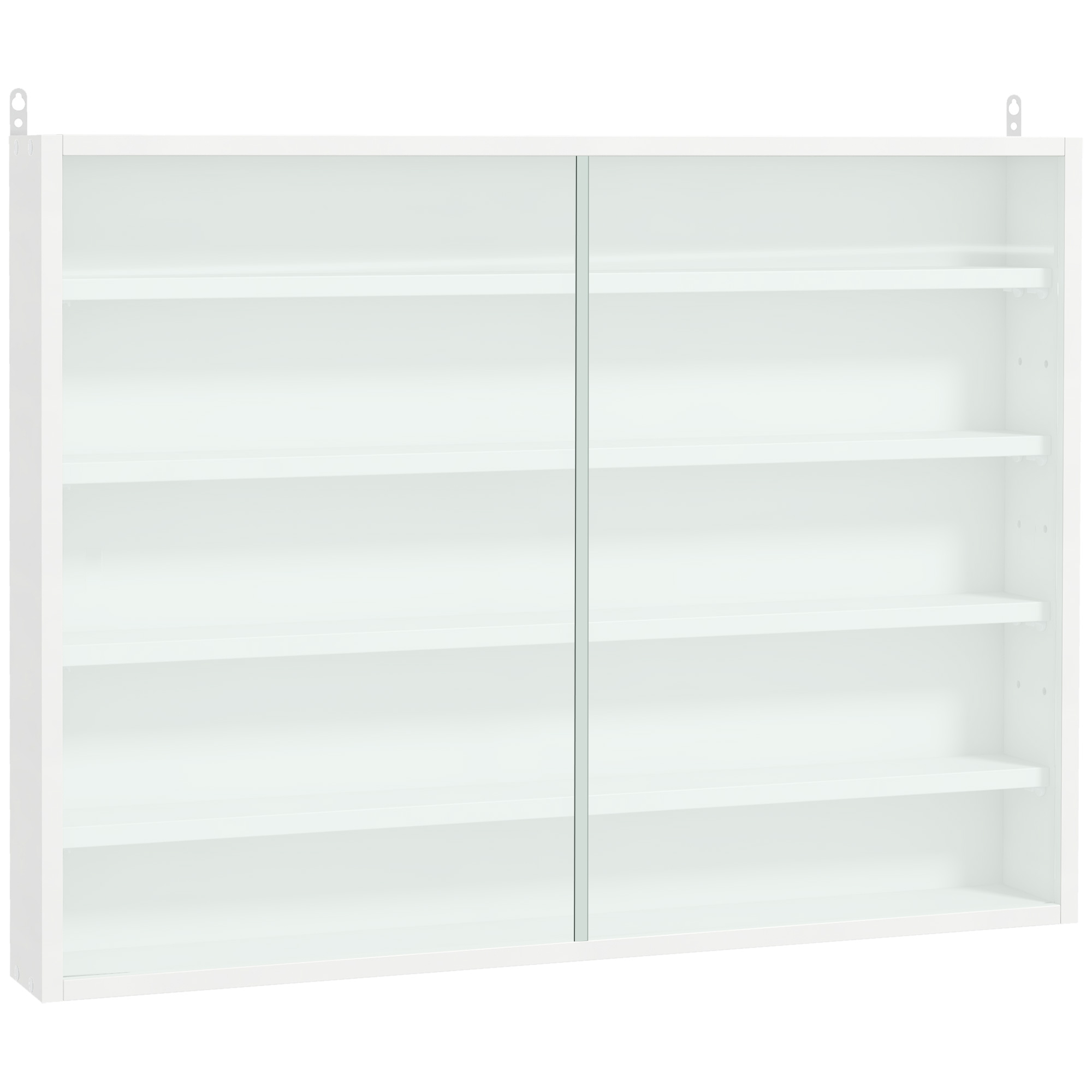 Vetrina Espositiva da Parete a 4 Ripiani Regolabili, Vetrinetta per Collezionismo, Bacheca Espositore a Muro per Oggetti da Collezione, in Vetro e Truciolato, 80×9,5×60 cm, Bianco