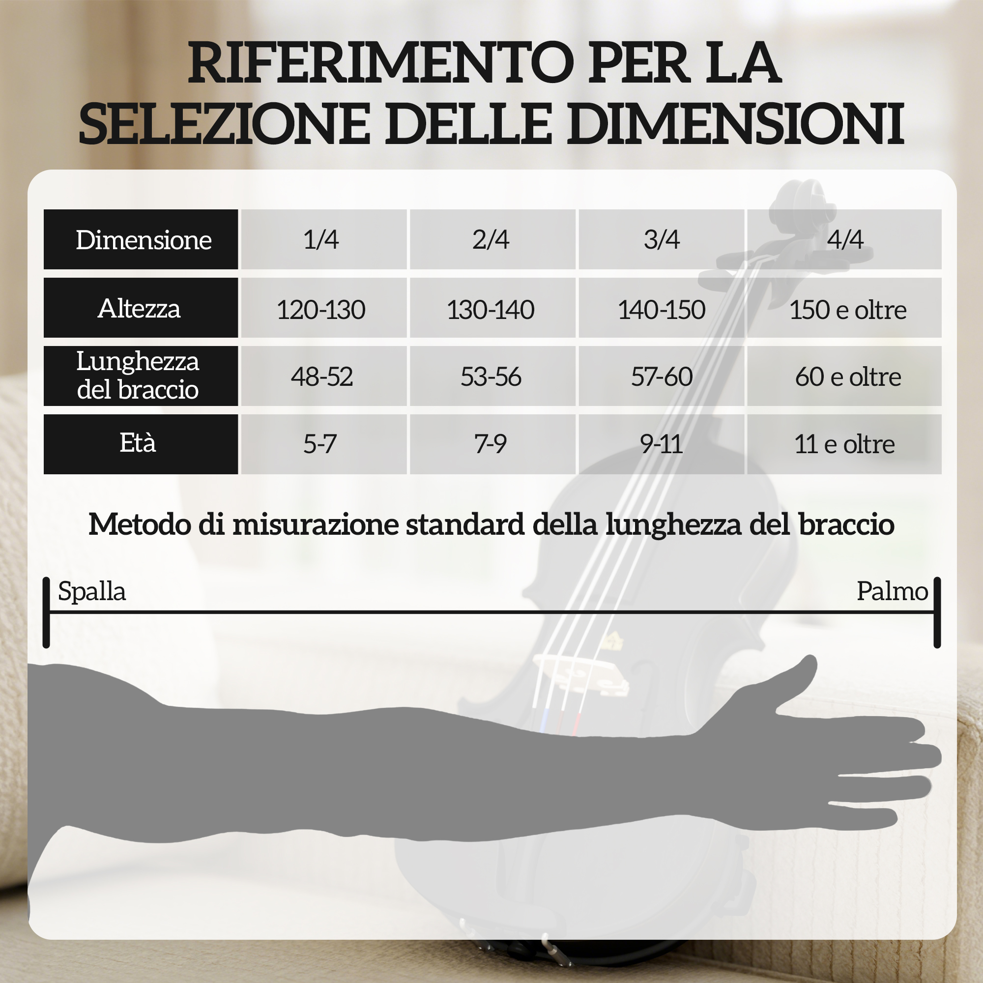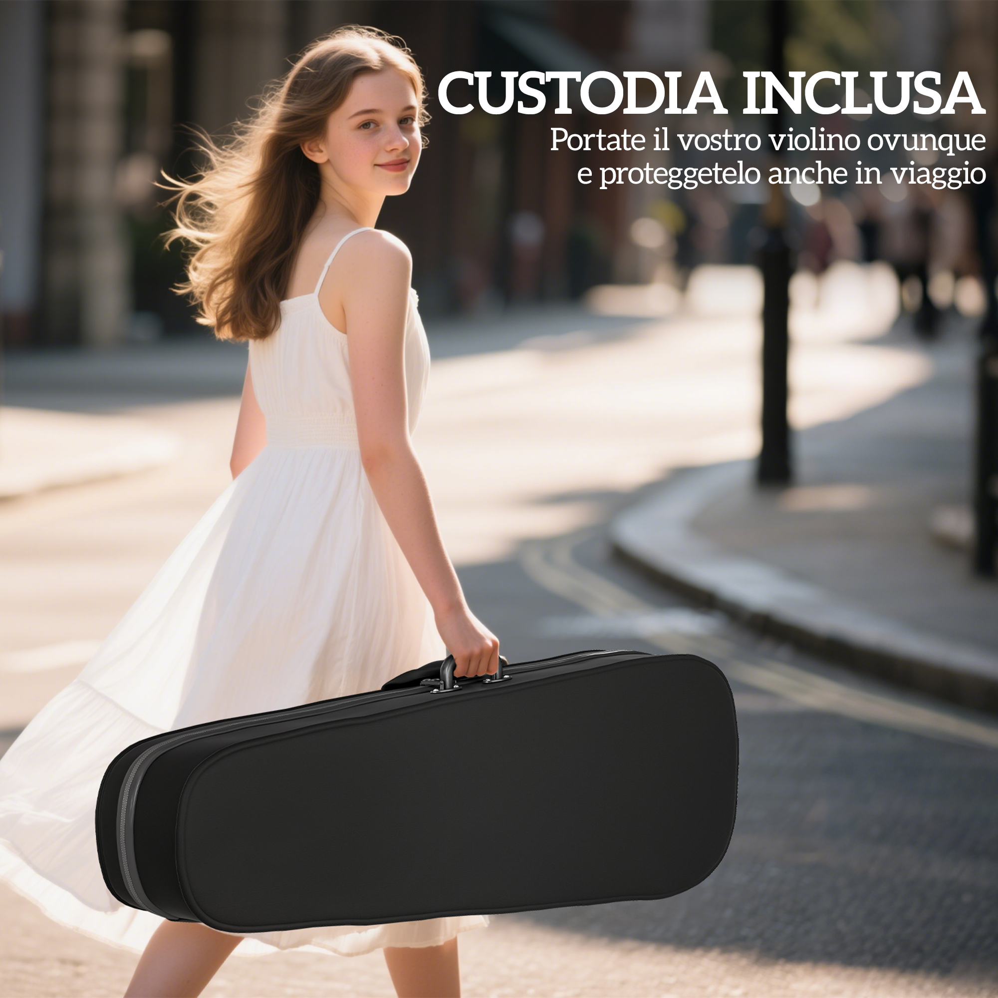 - • Violino 4/4 che include tutto il necessario per iniziare: arco, pece, spalliera e custodia