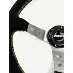 Il volante racing OCCVOL001 del marchio OCC Motorsport è un volante da competizione universale progettato per offrire un equilibrio tra funzionalità e stile in veicoli sia di simulazione che reali, specialmente in quelli senza airbag. Realizzato in Cina, questo volante presenta una struttura robusta in alluminio argentato di alta qualità e finitura in pelle scamosciata nera, che garantisce una sensazione morbida e confortevole al tatto, insieme a una presa antiscivolo che migliora controllo e sicurezza durante la guida intensa. Le sue dimensioni includono un diametro di 350 mm, uno spessore di 32 mm per una maneggevolezza precisa e una profondità di 90 mm, configurandosi come un volante offset con montaggio tramite 6 viti per un’installazione solida e sicura nella maggior parte dei modelli auto tramite coni compatibili di marchi come Sparco o OMP. Il design presenta dettagli neri con bordi e cuciture gialle che conferiscono un aspetto sportivo e accattivante, completato da tre razze in alluminio argentato che aumentano la resistenza e valorizzano l’estetica del volante. L’installazione è relativamente semplice, anche se si consiglia l’intervento professionale è importante sottolineare che per l’omologazione su veicoli stradali è necessario che l’auto non abbia airbag nel volante, richiedendo in tal caso un progetto e una modifica di laboratorio per l’inclusione nella carta di circolazione. Oltre all’uso in veicoli reali, questo volante è particolarmente apprezzato nel campo dei simulatori di corse, offrendo un’esperienza realistica e ad alta fedeltà agli utenti di simulazione. In sintesi, il volante sportivo OCCVOL001 di OCC Motorsport unisce materiali di qualità, design ergonomico e compatibilità universale per fornire una soluzione funzionale ed estetica per volanti da competizione e simulazione.