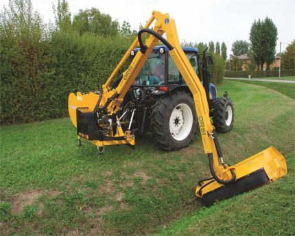 Decespugliatore idraulico con parallelogramma per lavorare in spazi ristretti. Adatto alla manutenzione di fossati, siepi e alberi con attacco primo braccio centrale ed alto, consigliato per scavalcare segnaletica stradale e guard rail, rotazione idraulica con valvola di sicurezza, sgancio rapido al sollevatore. Il braccio decespugliatore può essere accessoriato con vari attrezzi terminali, testata triniciante, barra siepi, scavafossi, tranciarami